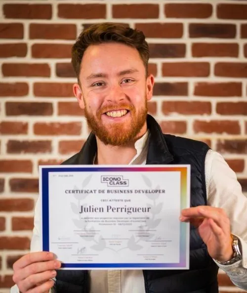 "Je mets 5 étoiles car j’ai pas pu mettre 6. La promesse est largement tenue, j’ai appris le métier de business developer en 12 semaine et signé mon CDI deux semaines après la fin de la formation. Il n’y aura jamais assez de place sur cet avis pour exprimer toute ma reconnaissance car iconoClass a changé ma vie !"